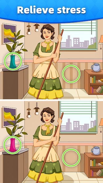 You can start from 5 differences, and become a professional finder by solving harder levels. These amazing colorful pictures include cartoons, animals, food, rooms, beautiful views, and so on. The common levels are very relaxing and have no timer. And you can use hints to find hidden differences if you find they are hard.Detective