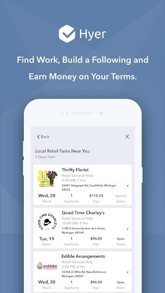 HYER JOB SEARCH APP FOR TASKERSLooking for flexible, local work? Hyer is a simple job search app that connects you to multiple task types in your neighborhood. From stocking and general labor tasks to warehousing, merchandising and more—skip job interviews and use Hyer to work when and where you want!